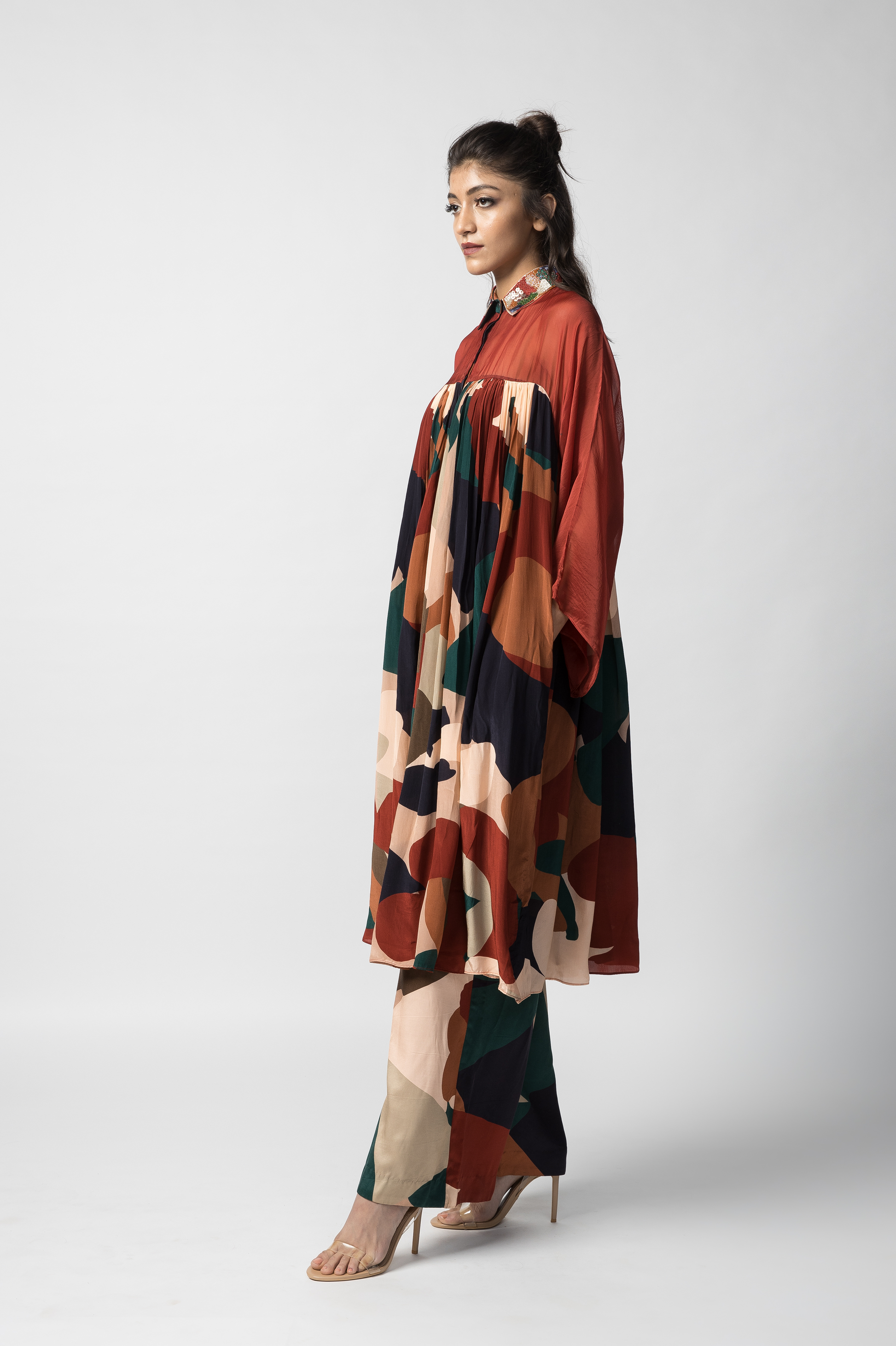 Ruby Paneled Shirt Dress With Trousers