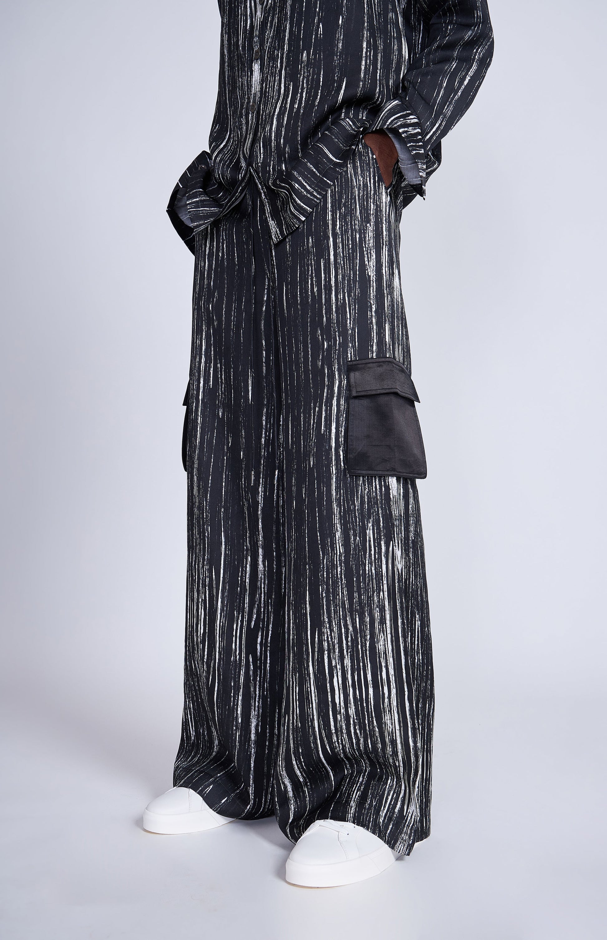 A wide leg trousers with a patch pocket and elastic at the waist. Best paired with Taki Shirt